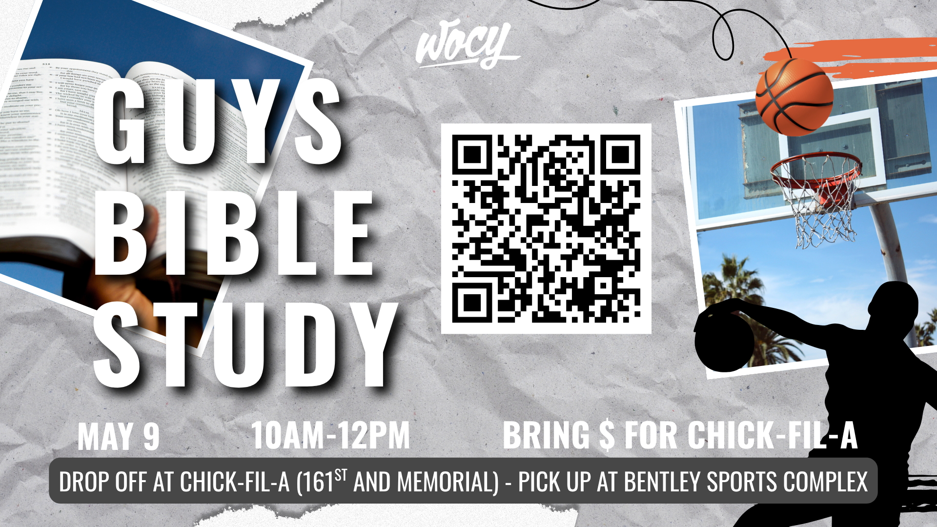 Hey WOC Youth guys! Join us for a morning of community, discipleship, and conversation as we gather for the Guys Bible Study on May 9th from 10:00 AM–12:00 PM.